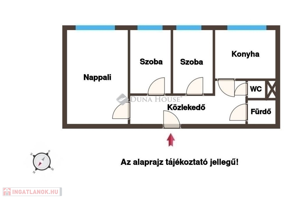 A lakás tágas nappaliból, két hálószobából (egy teljes és egy fél szoba), ablakos konyhából, fürdőszobából és külön WC-ből áll. A ház rendezett, barátságos lakóközösséggel rendelkezik.