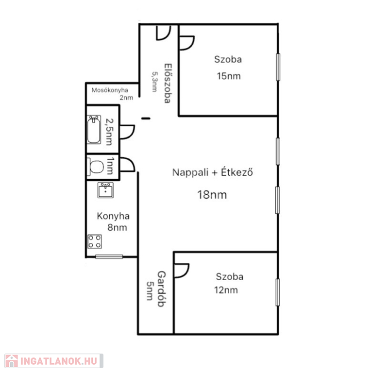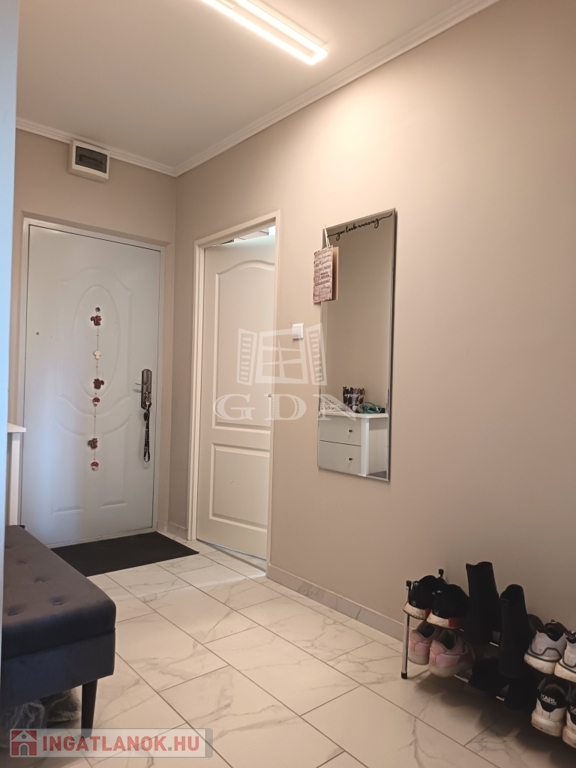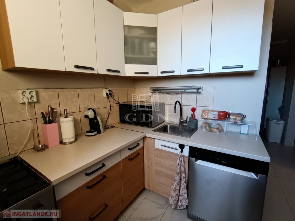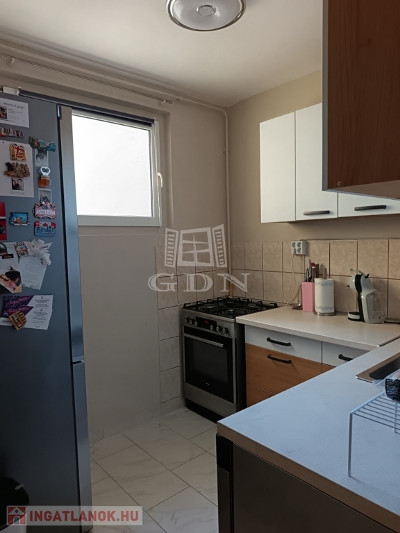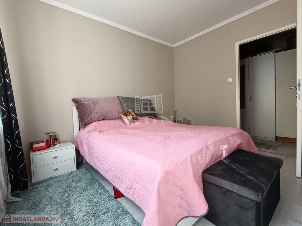 Felosztása: 2 tágas, napfényes hálószoba, egy tágas, szintén napfényes nappali, különálló konyha, különálló fürdőszoba nagy méretű tusolóval, nagy méretű konyhával, melyen ablak van!
