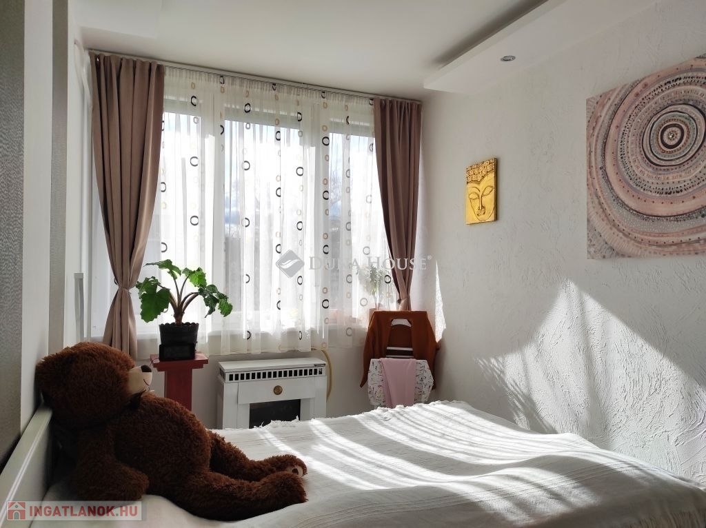 AZ IZZÓ LAKÓTELEPENEladó Újpest kertvárosias környezetében található, teljes mértékben felújított, 51 nm-es, erkélyes, 3. emeleti lakás.A lakás jellemzői: - csendes, kertvárosias környezetben található - teljesen felújított - 3. emeleti középső lakás - alacsony rezsi ( gáz 5-10 ezer FT/hó fűtési szezonban, villany 7500-12000 Ft/hó ) - hűtő, fűtő klíma a nappaliban - a műanyag ablakok redőnnyel, szúnyoghálóval felszereltek - déli tájolás, napfényes, világos szobák és konyha - erkélykapcsolatos, tágas nappali, egyik fal mentén mennyezetig érő beépített szekrénnyel, polcos, akasztós, fiókos elemekkel - a szobában álmennyezetbe épített hangulatvilágítás, távirányítható LED csíkkal - a látványkonvektor a fűtés mellett a kandallók lángjának hangulatát idézi - 2 ablakos!, világos konyha beépített gépekkel felszerelve ( indukciós főzőlap, elektromos sütő, hűtő, fagyasztó, nagy méretű mosogató gép, mikró ) - a konyha a 6 személyes étkező asztallal is tágas érzetet kelt, igazi ritkaságnak számít - kádas fürdőszoba WC-vel - a melegvizet új, 80 literes villanybojler szolgáltatja - a lakás frissen festve - a pincében 2 lakással közösen használt nagy tároló zárható szekrényekkel - közös költség 9700 Ft. - csendes, jó lakóközösségKözlekedés: - 220-as busz a ház előtt áll meg, de 5-6 perces séta távolságra van a 30 és 30A buszok megállója is - a belváros autóval 15 perc, MO autópálya 5 perc alatt elérhető - M3 metró 15 perc busszalBoltok, óvoda, iskola, gyógyszertár, sportolási lehetőség pár perc sétával elérhető.Közelben van a Szilas park és Farkas-erdő.Az ingatlan 1/1 tulajdonú, tehermentes.Ideális otthon pároknak, egyedülállóknak, és befektetőknek is!