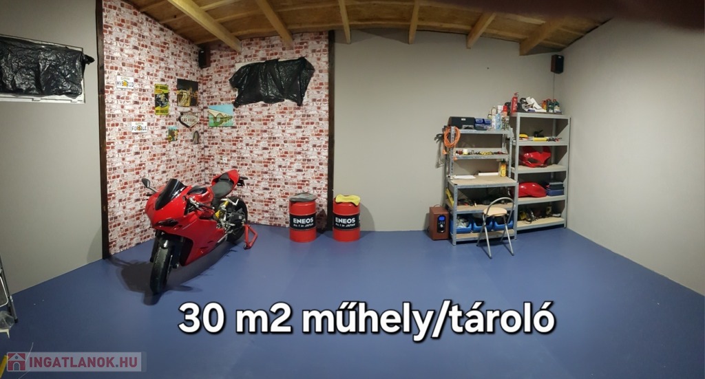 Az ingatlanhoz tartozik egy garázs, egy pince és egy külön tároló is, ami további tárolási lehetőséget biztosít.