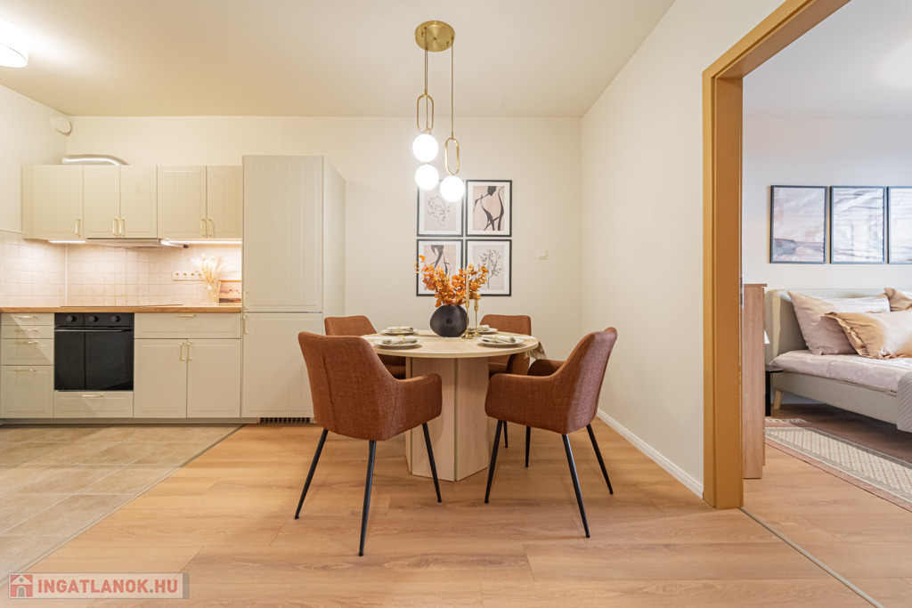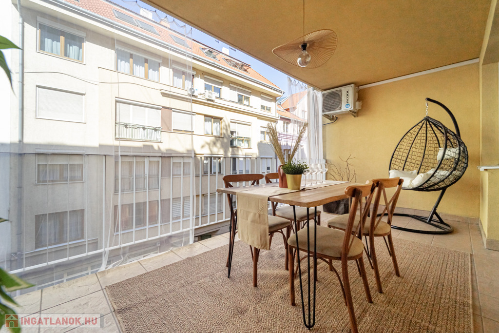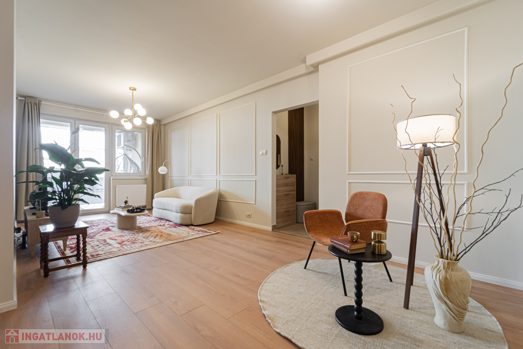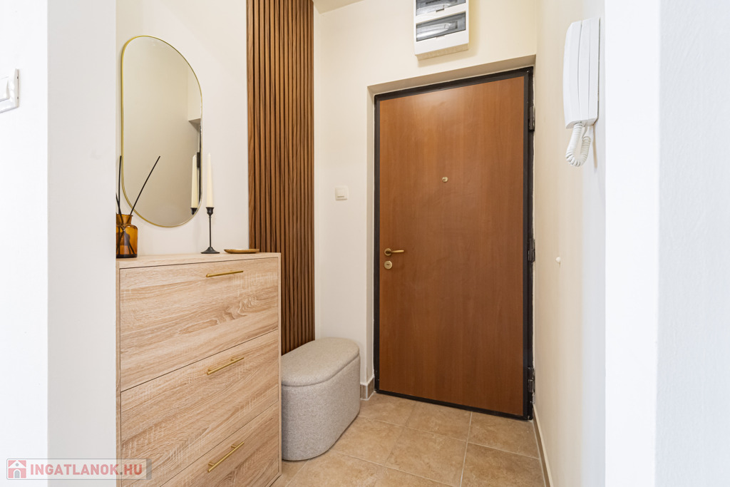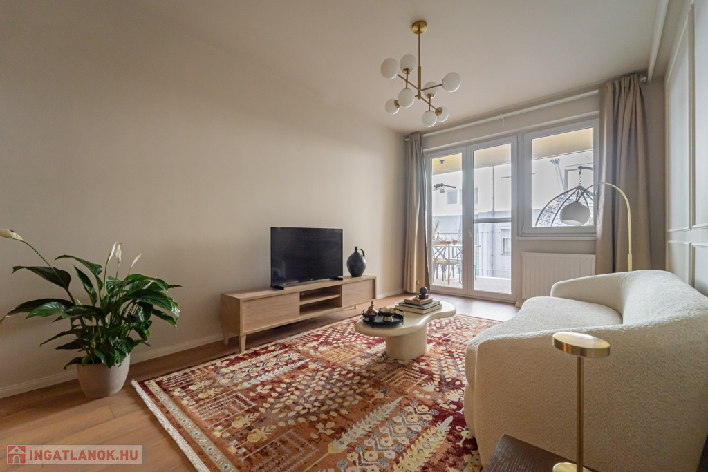 Tulajdonostól eladó egy teljes körűen 2025-ben felújított, kulcsrakész, azonnal költözhető 60 m²-es, 2 szobás lakás, hatalmas 14,5 m²-es terasszal. Modern design, új, minőségi anyagok, bútorozott állapot – ritka lehetőség a piacon!