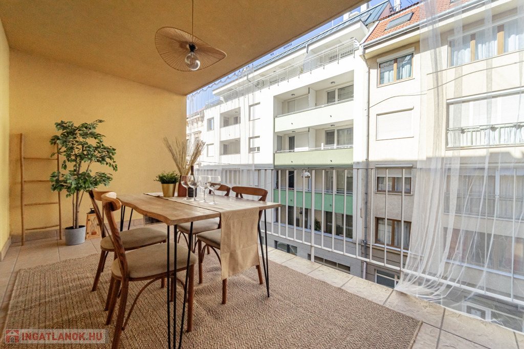 A liftes lakás a 2. emeleten helyezkedik el, utcára néző, keleti fekvésű, de mégis elég világos, légkondicionált. Az elmúlt hónapokban teljes körű felújításon esett át: új burkolatok, festés, designbútorok, valamint prémium gépesített konyha került kialakításra. A nappaliból nyílik a hatalmas, 14,5 m²-es loggia, amely kiválóan használható étkezésre, pihenésre, és akár be is építhető!