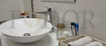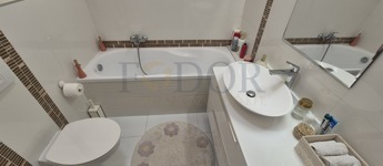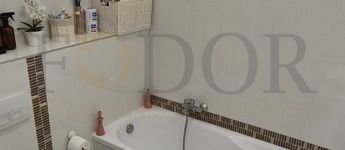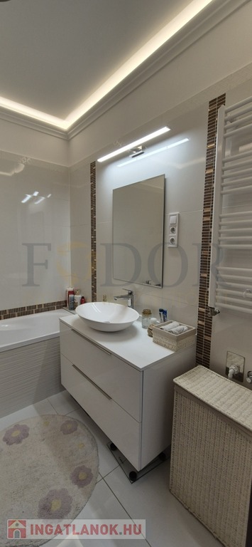 Az eredeti alaprajz szerint a lakás két fürdőszobával lett megtervezve, azonban a jelenlegi tulajdonosok a szülői hálószobához tartozó fürdőhelyiséget praktikus gardróbszobává alakították. A víz- és szennyvízkiállások azonban megmaradtak, így igény esetén a második fürdőszoba könnyedén visszaállítható.