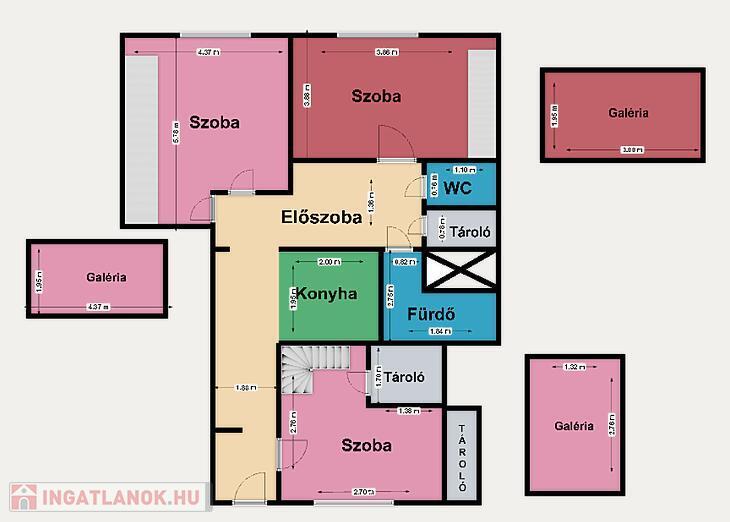 A lakás rendkívül praktikus elosztású: három külön nyíló szobával rendelkezik, melyek mindegyikéhez saját galéria tartozik, így ideális választás lehet akár családoknak, akár befektetőknek – például diákok számára történő kiadásra. A lakásban külön fürdőszoba és WC található, a szobák közül kettő utcai, egy pedig udvari nézetű. A fűtés elektromos, emellett klíma is beszerelésre került.