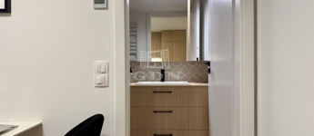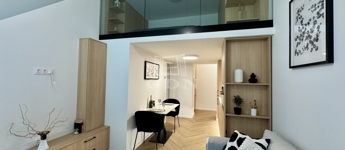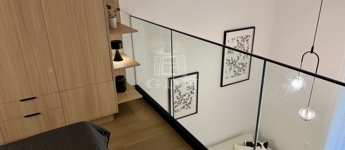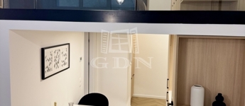 A lakás magas belmagassága lehetővé tette egy 11,68 m²-es állógaléria kialakítását, amely hálószobaként és extra tárolóként is funkcionál, így a tér jóval tágasabb és kényelmesebb a megszokottnál.