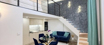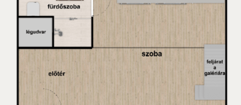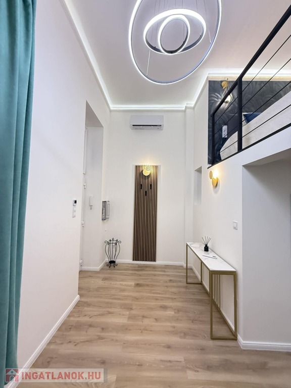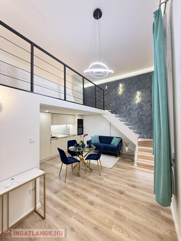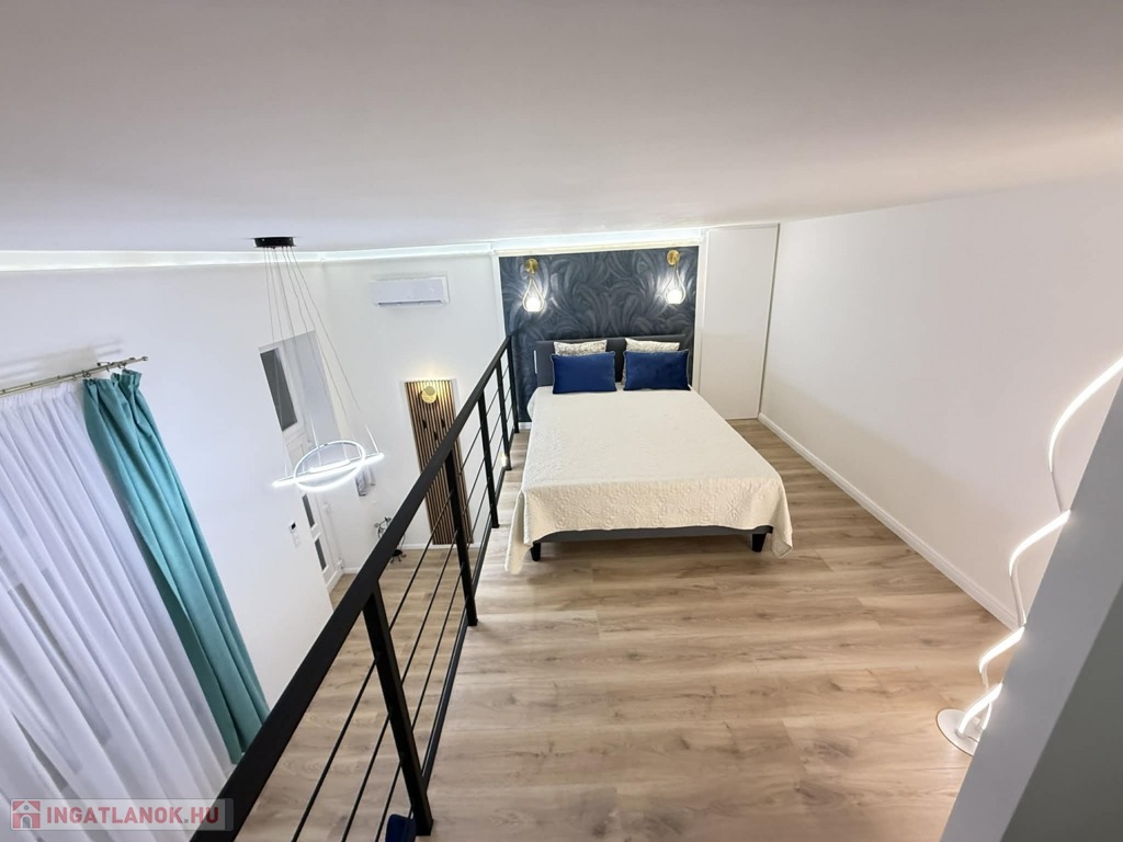 Az ingatlan bruttó 40 nm, 27 nm-es alapterületét a több, mint 4 méteres belmagasságot kihasználva egy 13 nm-es, teljes értékű, 183 cm belmagasságú galériaszint egészíti ki. Jól megtervezett belső kialakításának köszönhetően kis mérete ellenére a lakás a tágasság érzetét kelti.