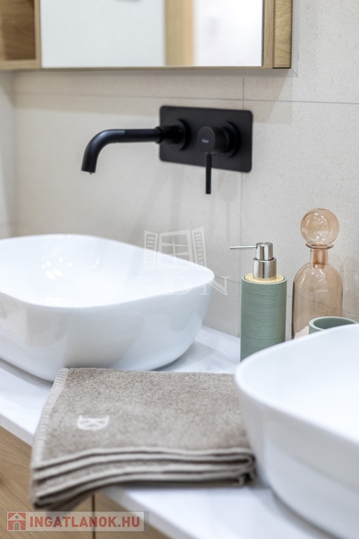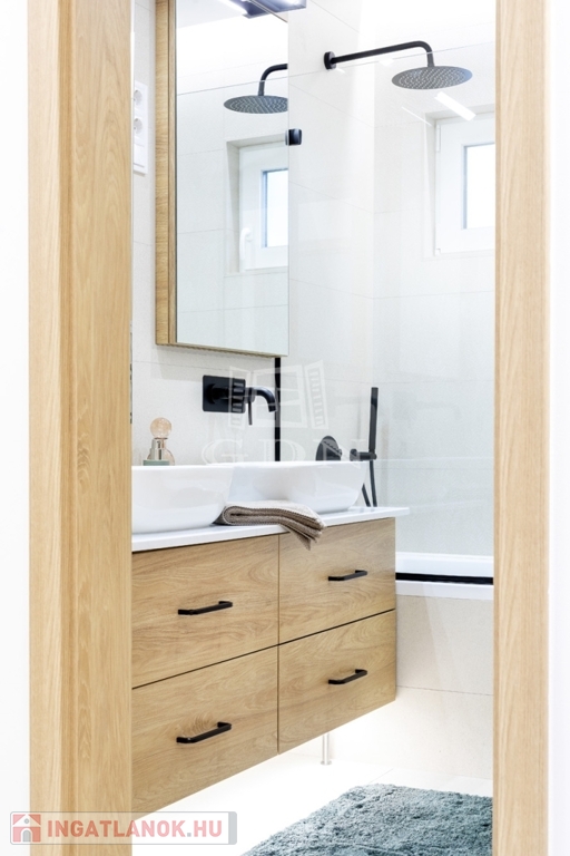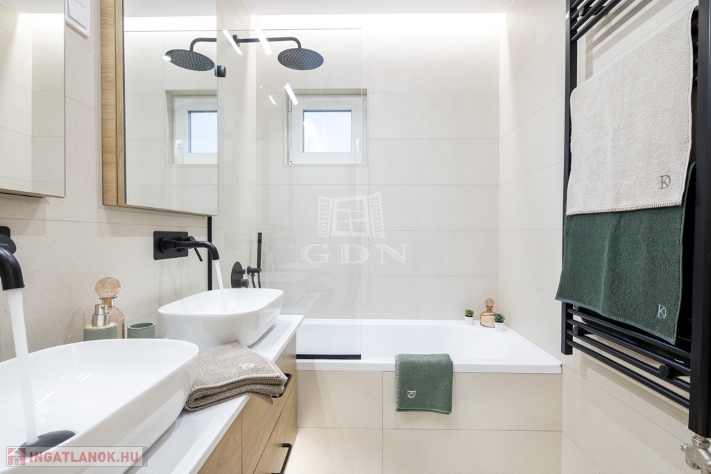 • új, kádas fürdő dupla mosdóval