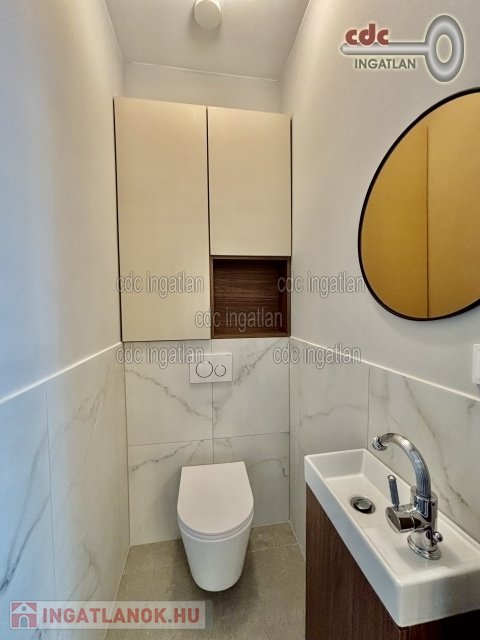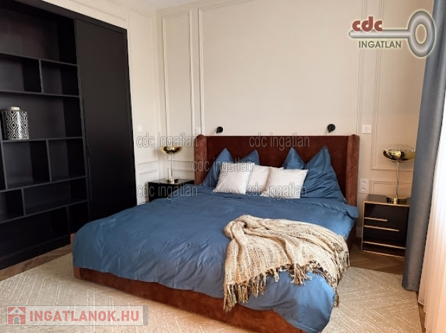 Eladó egy prémium minőségű, teljesen újjáépített, örökpanorámás luxus lakás az V. kerületének szívében, Lipótváros egyik patinás, art deco stílusjegyeket is őrző, század eleji, liftes társasházában. Az előszobából nyílik egy kisebb dolgozó vagy vendégszoba, majd az egyedi, sötétkék színű, teljesen gépesített konyhába jutunk, amely a nappalival egy légtérben található. Az étkező természetesen elválasztja a konyhát a tágas, napfényben úszó nappalitól. Az előszoba része egy háztartási/gépészeti helyiség, valamint egy különálló WC is. A nappaliból igényes tolóajtón keresztül érhető el a nagy méretű hálószoba, amelyhez saját gardrób és kádas fürdőszoba tartozik. Helyiségenként szabályozható, 4 zónás padlófűtés és mennyezethűtés, 8 kW-os Midea levegő-víz hőszivattyúval. Prémium minőségű burkolatok (olasz csempe stb.). Hőszivattyús használati melegvíz-ellátás 160 literes indirekt tárolóval. Teljesen gépesített konyha AEG készülékekkel és gránit mosogatótálcával. Okostelefonról vezérelhető, mindenhol elérhető LED világítás. Többrétegű, hang- és hőszigetelt alumínium-fa nyílászárók motoros redőnnyel. A lakás páratlan kilátást kínál a Dunára, az Olimpia Parkra, a Parlamenttől egészen a Margit hídig. A szemben álló fák esztétikai látványt nyújtanak anélkül, hogy zavarnák a kilátást, amely a lakás szinte minden helyiségéből élvezhető. Az erkélyről a Budai oldal lenyűgöző látványa is elénk tárul.