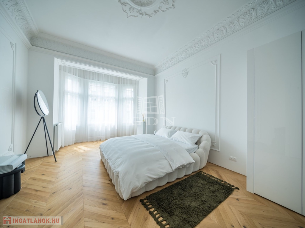Eladó a belváros szívében, a Hold utcában egy 200 m²-es, páratlan luxuslakás 700 millió Ft-ért, teljes designer berendezéssel. A tágas nappali–étkezőt prémium Arclinea konyha, Miele gépek és elegáns részletek egészítik ki. Három hálószoba saját fürdővel, plusz vendégmosdó biztosít kényelmet.