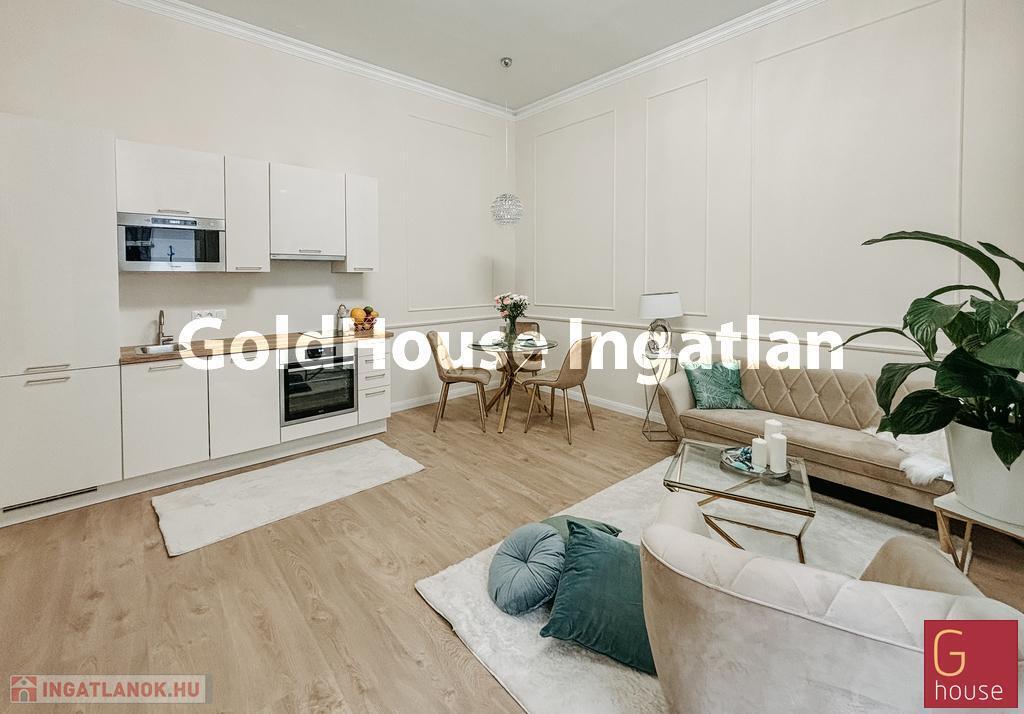 A 39 m²-es lakás minden részletében a minőség és az átgondolt tervezés jegyében született újjá. A 3,4 méteres belmagasság és a praktikus térszervezés tágas, elegáns életteret eredményezett. A konyha Bosch és Whirlpool gépekkel teljesen gépesített, a nyílászárók háromrétegű, borovi fenyőből készült, hő- és hangszigetelt ablakokra lettek cserélve, a fűtésről és a melegvízről BOSCH kondenzációs kazán gondoskodik. A lakás modern elektromos hálózattal, energiatakarékos LED-világítással és prémium minőségű burkolatokkal került kialakításra.