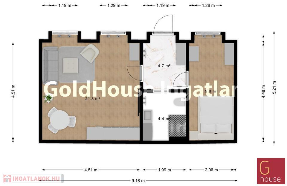 A lakás elrendezése ideális: a hangulatos előszobából nyílik a hálószoba és a fürdőszoba, a nappali amerikai konyhás kialakítása pedig egyszerre stílusos és praktikus, így a mindennapokat elegáns környezetben élvezheti az új tulajdonos.