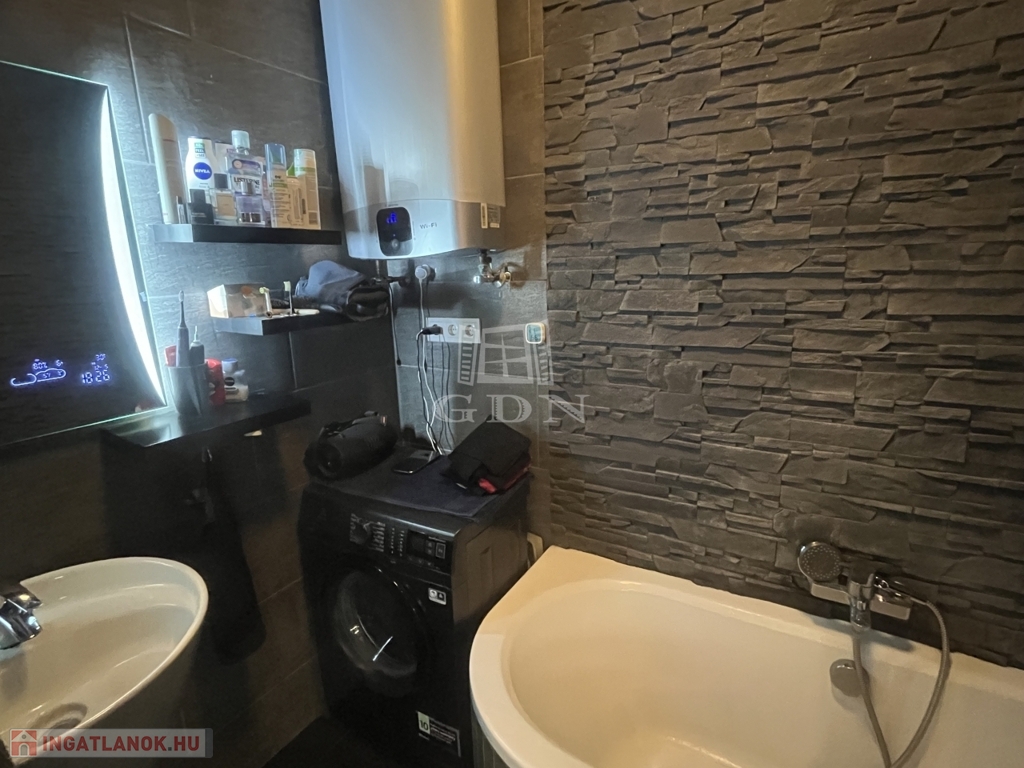 A lakás minden négyzetcentije átgondolt, modern és kényelmes. A teljesen gépesített konyha mosogatógéppel, sütővel és beépített megoldásokkal vár, így kis mérete ellenére mindent tud, amire csak szükséged lehet. A hálószoba bútorai méretre készültek, a kanapé és az ágy pedig Milánóból, kézzel készült darabok – valódi olasz minőség.