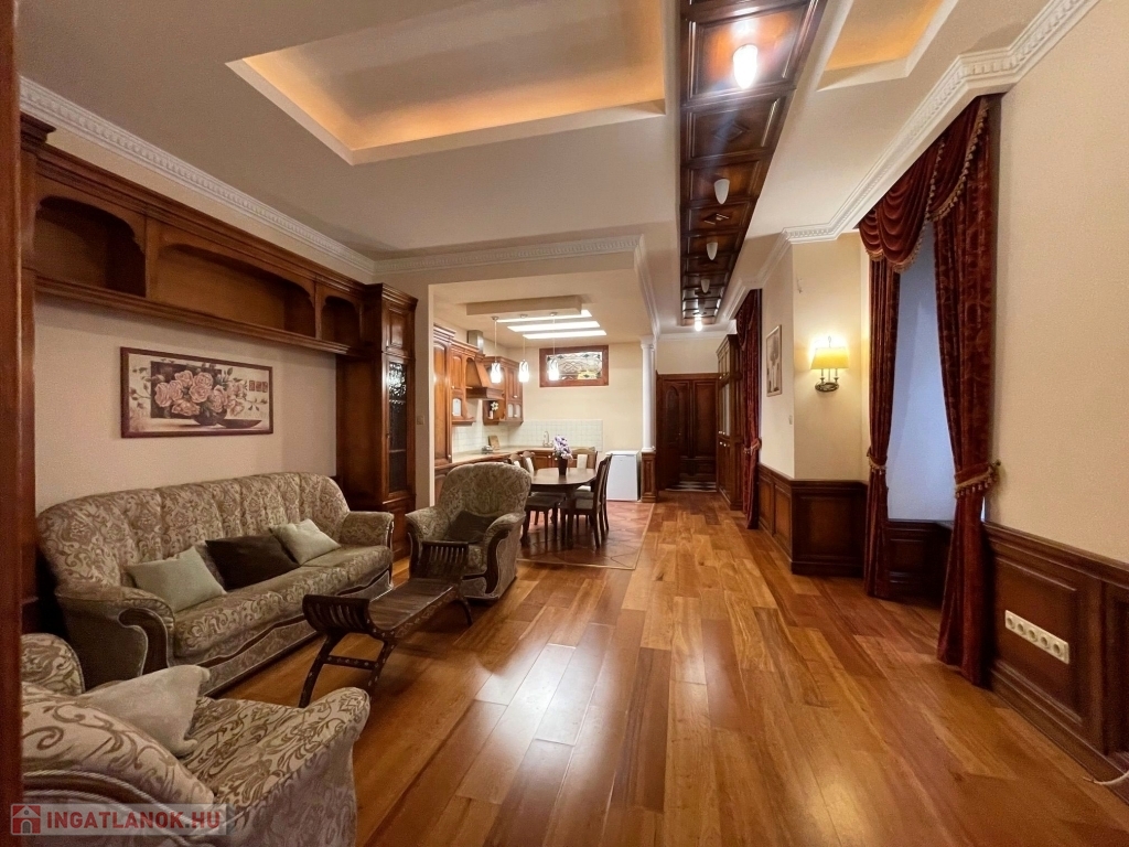 V. kerületben, az Október 6. utcában eladó egy 103 m2-es, amerikai konyhás nappali plusz hálószobás,1. emeleti lakás. Az ingatlan udvari nézetű, kimondottan csendes, fűtését gázcirkó készülék és hűtő-fűtő klíma biztosítja. A ház kívül-belül szép állapotú. A környék felszereltsége kimagasló. A közelben éttermek, kávézók, gyógyszertár, vásárlási lehetőség. A Duna-part, a Bazilika, a Parlament pár perces sétával elérhető. Az ingatlan tehermentes. Hétvégén, ünnepnapon is elérhető vagyok.