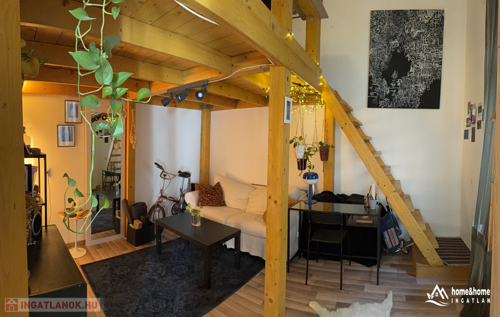 A galéria növeli a hasznos életteret, így a lakás méretéhez képest kifejezetten tágas érzetet nyújt.