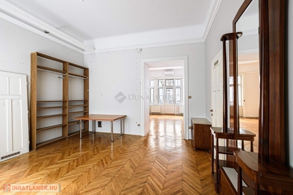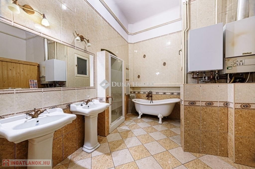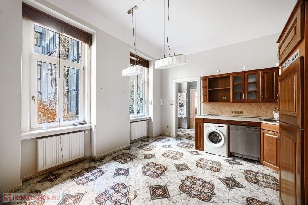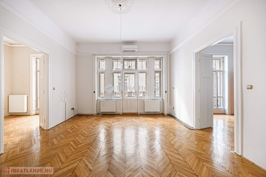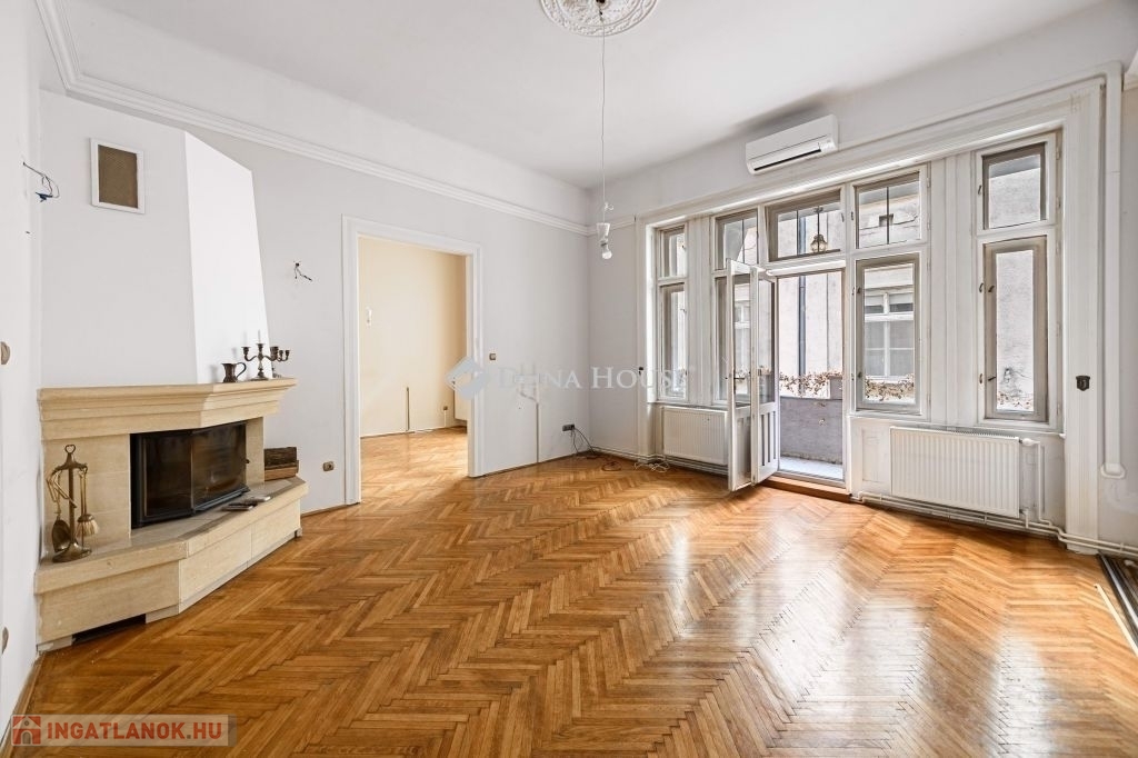 - ERKÉLYES!V.kerületben a GERLÓCZY utcában ELADÓ egy 128 nm-es közepes állapotú 1. emeleti lakás.AZ ÉPÜLET:A nyomokban szecessziós elemeket is tartalmazó, egyébként eklektikus stílusú épület 1903-ban épült. Tervezte: Hajós Alfréd és Villányi JánosAz ingatlan közepes állapotú, nyílászárói mind eredeti fa gerébtokos ablakok. A külső nyílászárókban az üvegezés ki lett cserélve, így kétrétegűek.A szobákban eredeti fa parketta található, a fürdőben és a konyhában hidegburkolat.A fürdőben a kazán 4 éves. A fürdőszobában a tulajdonosok kialakítottak egy finn szaunát is.A nappaliban található egy hagyományos fa tüzelésű kandalló, mely fantasztikus hangulatot ad ennek a szép polgári lakásnak. A lakás ÉNY-i tájolású!!