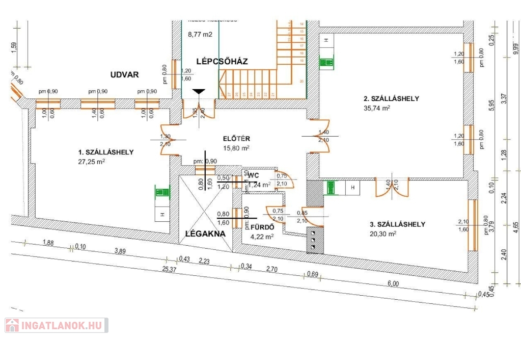Ha turisztikai célú befektetést keres a Szent István Bazilika környékén jó megtérüléssel nem is kell tovább keresnie. Eladásra kínálunk egy ingatlan együttest egy jó állapotú liftes társasházban. Az épület 1. és 2. emeletén egy-egy polgári lakást melyekből 3-3 önháló apartman alakítható ki. A csomag része továbbá a komplett 3. és 4.+5. emelet ahol további 16 apartman kialakítható. A legfelső V. emelet tökéletes lehet egy reggeliztetőt & Sky bar kialakítására. A társasház jelenleg is engedélyezi a rövid távú bérbeadást. Az ingatlan csomag együttesen a társasház 50% feletti részét jelenti. Az ingatlanhoz teremgarázzshely bérelhető a szovszédosépület alatt