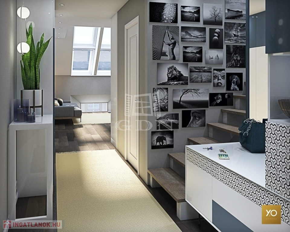 A lakások egyedisége egyrészt a régi idők és a modern kor ötvözetében rejlik. Egy klasszikus épület, melynek teljes körű felújítása során, a legfelső szinten 12 modern, tetőteraszos okos otthon kerül kialakításra.