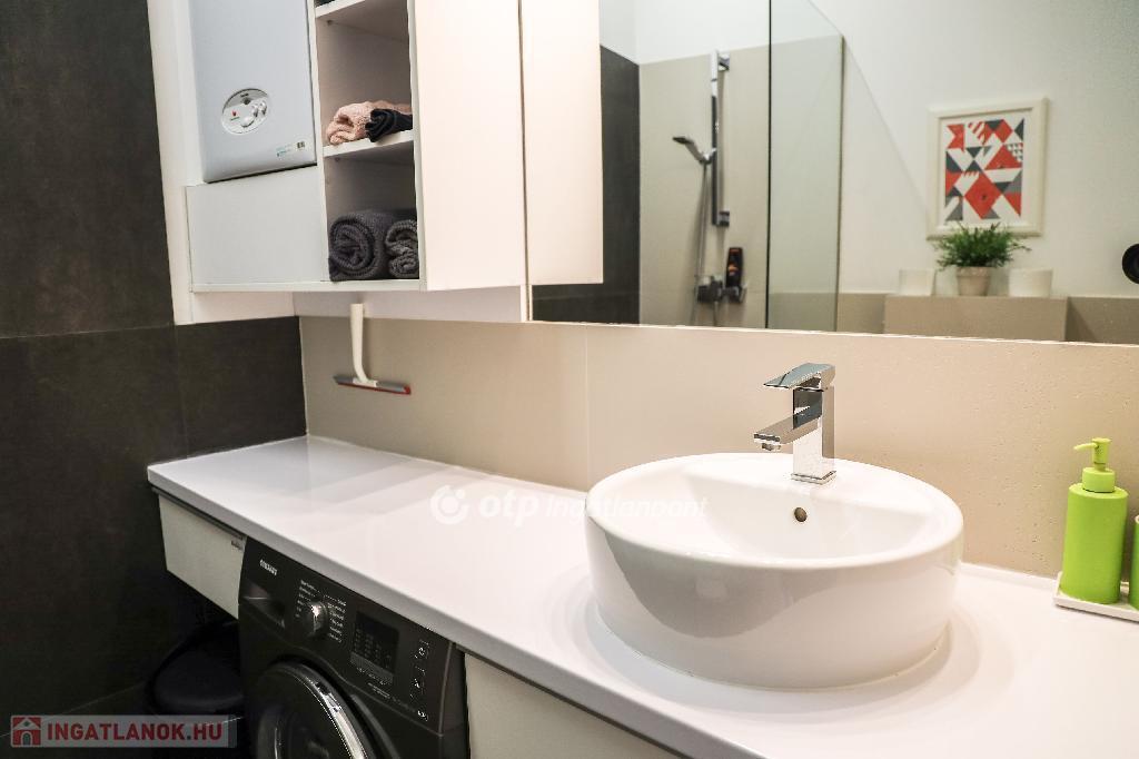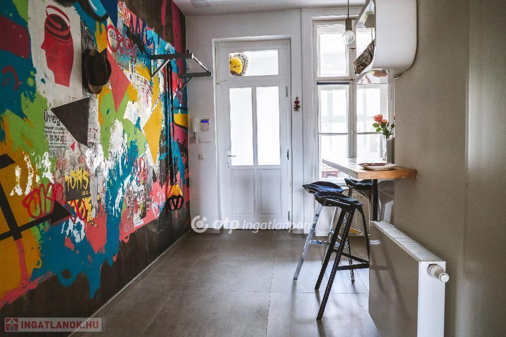 BUDAPEST VI. kerületében, a Nyugati pályaudvar szomszédságában, eladó egy 60 m2-es, kétszobás, 3.emeleti lakás. A lakás megközelítése egy szomszéddal közösen használt, zárt téren keresztül történik, amely a társasház csendes, belső udvarára néz. Elosztása praktikus és jól élhető: az előszobából és a konyhából nyíló közlekedőn át érhetők el a külön nyíló szobák, a fürdőszoba WC-vel, valamint egy tároló helyiség is helyet kapott. A fűtés és használati melegvíz ellátás gáz cirkóval biztosított. Az igényesen felújított lakás szobáinak ablakai az utcafrontra, a konyha ablaka egy belsőudvari előtérre néz. Az ingatlan 10 évvel ezelőtt teljes körű felújításon esett át. A lakás egész nap világos, K-NY-i fekvésű. A környék kereskedelmi ellátottsága igen széleskörű, a tömegközlekedési eszközök megállói pár lépés sétával elérhetőek. A lakásban jelenleg bérlő van, ha befektető vásárolja meg, szívesen maradna. Ajánlom azoknak, akik szeretnének a belvárosban, mégis csendes helyen élni, valamint befektetésnek is kiváló! Ha bármilyen kérdése van, vagy megtekintené a lakást, kérem hívjon bizalommal, a hét bármely napján, reggel 8 és este 8 között. Az OTP Ingatlanpont teljes körű ügyintézéssel áll ügyfelei rendelkezésére.