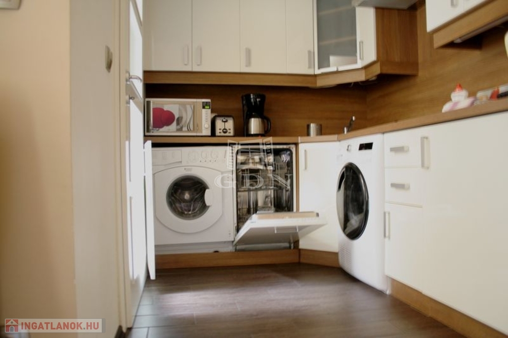 A lakás egy szép állapotú társasházban található, belső udvarra néző ablakokkal, így a belvárosi elhelyezkedés ellenére csendes, nyugodt környezetet kínál.