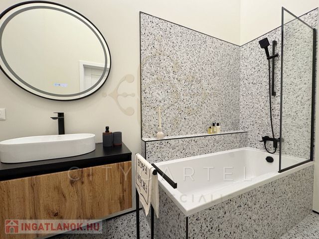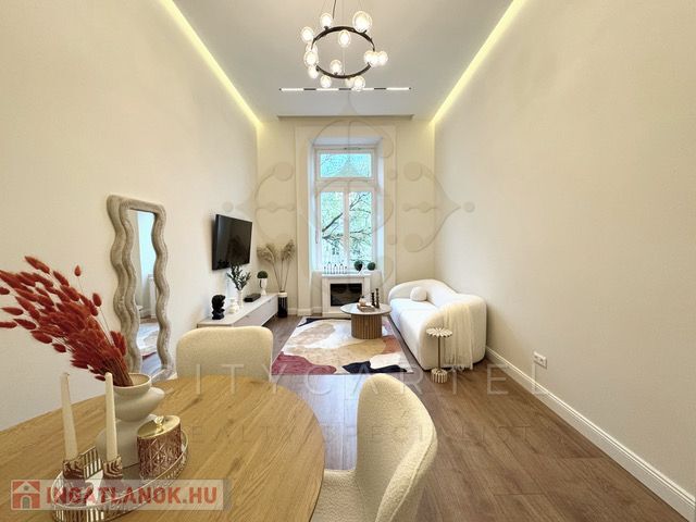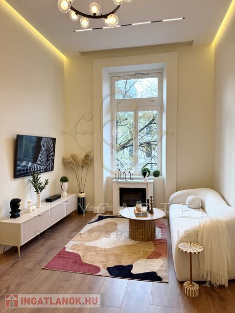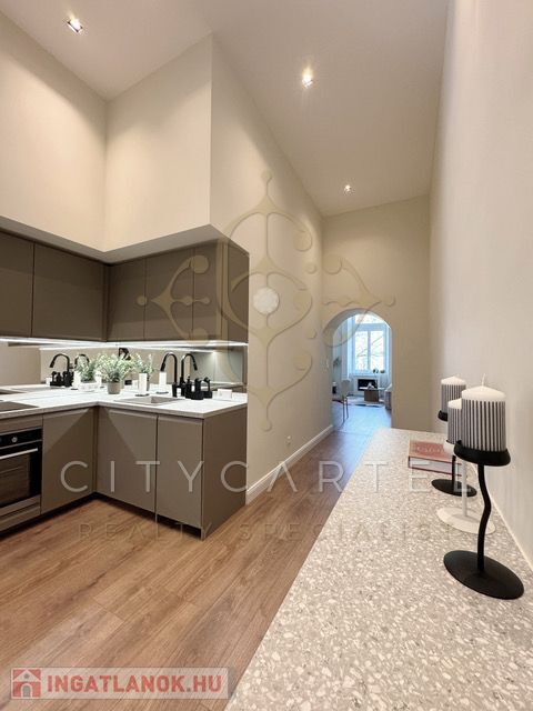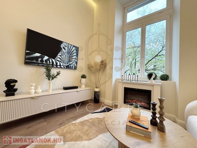 Az ingatlan egy teljes körűen felújított, modern stílusú, 73 nm-es lakás, 3,9 méteres belmagassággal és egy 8,7 nm-es galériával (2 méteres belmagassággal), amely tovább növeli a térélményt.