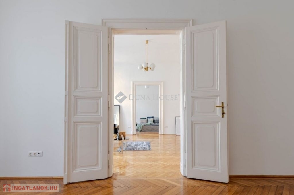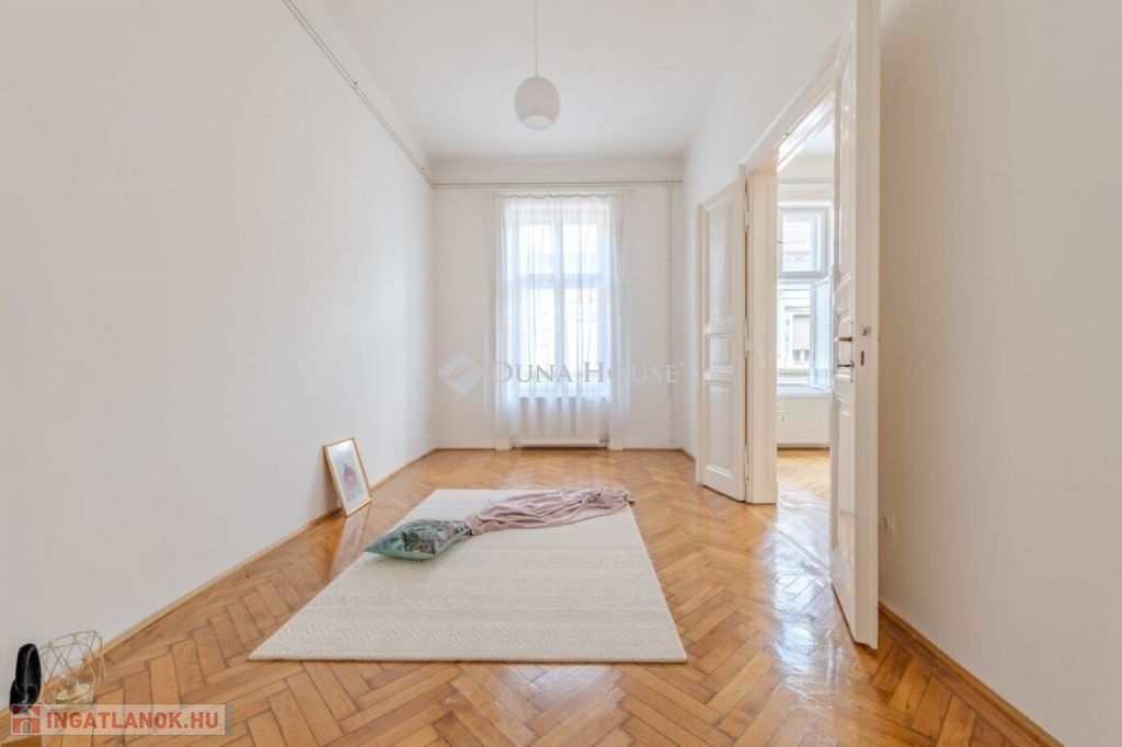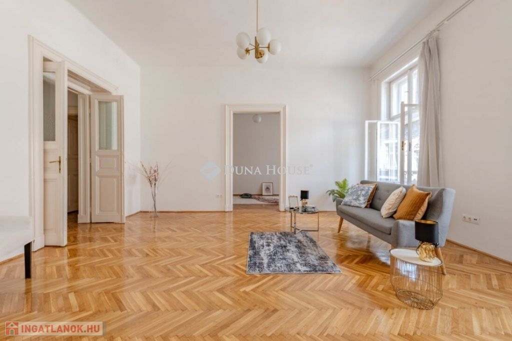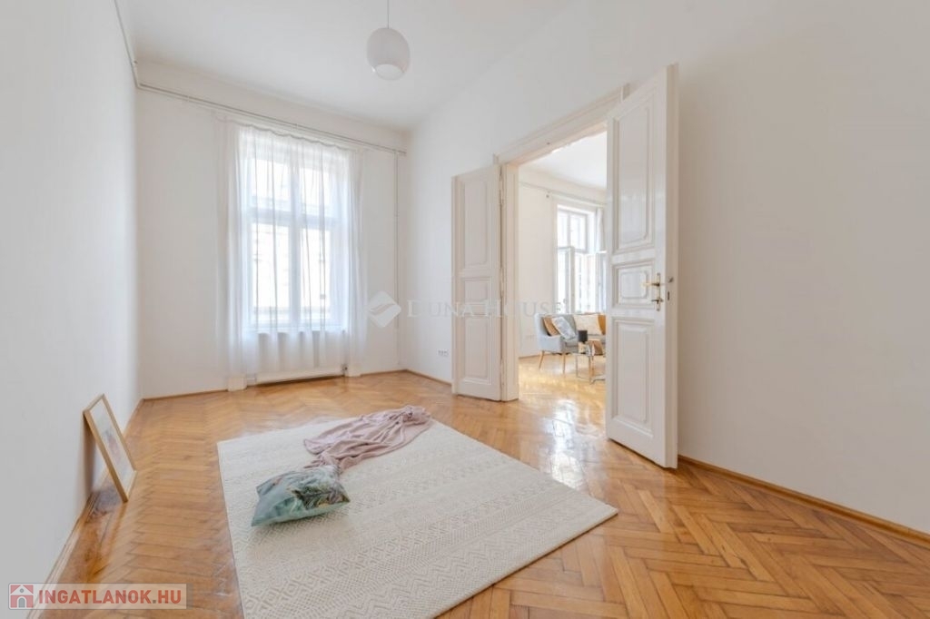 Ez az ingatlan megőrizte eredeti, nagypolgári hangulatát. A lakás tágas, világos nappalija természetes fényben úszik, ideális a pihenéshez vagy vendégek fogadásához. A hálószobák külön nyílóak, a tágas ablakok pedig mindig napfényes, barátságos hangulatot teremtenek. A belső terek rugalmasan alakíthatók, így könnyen személyre szabhatóak.