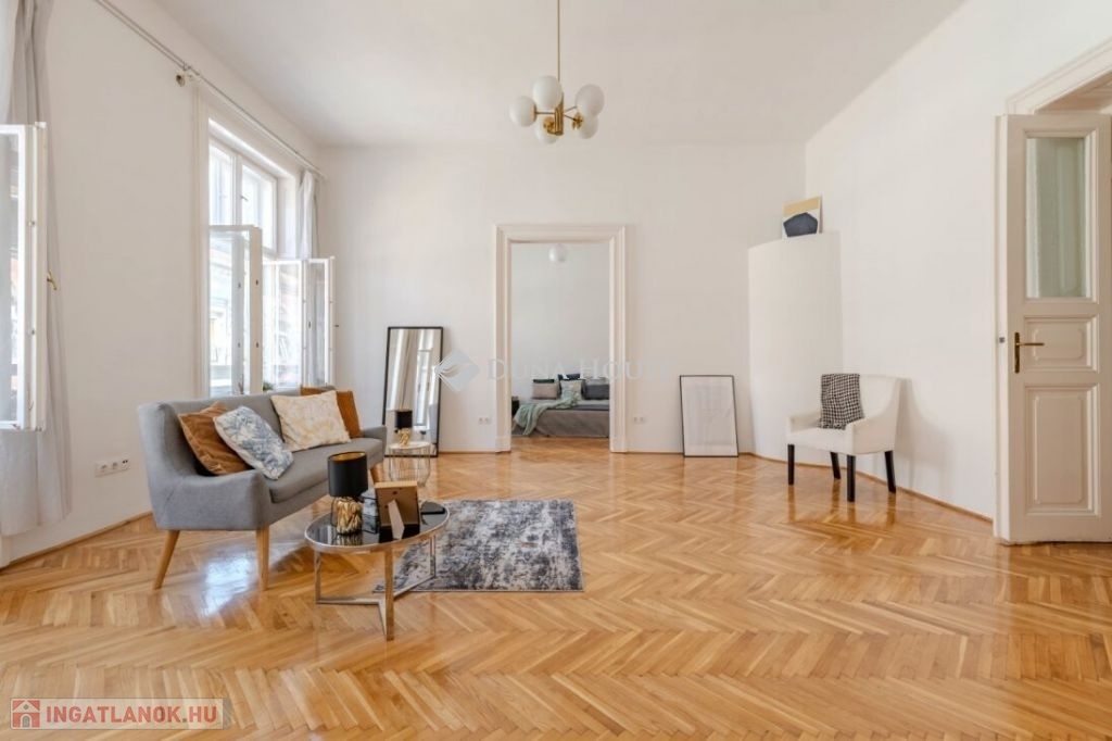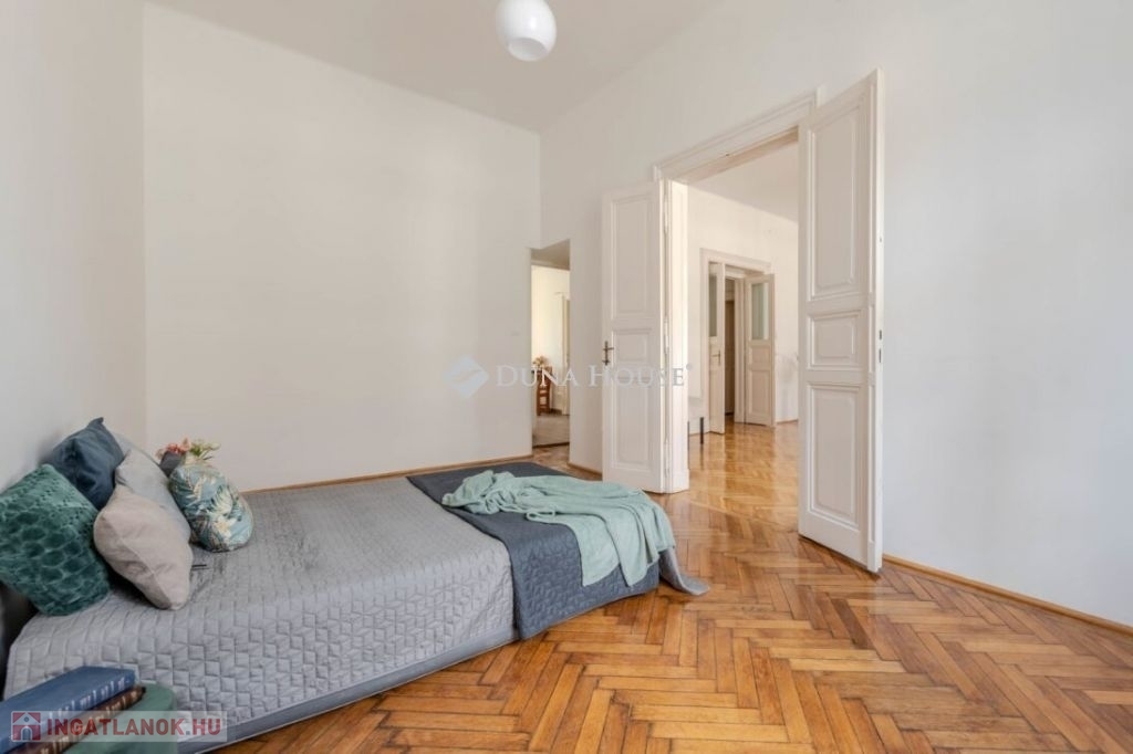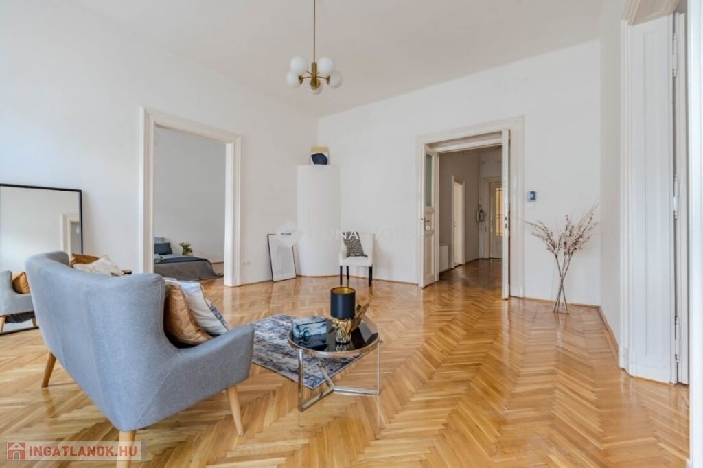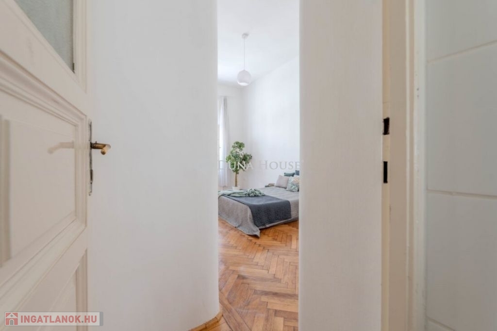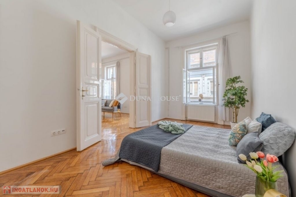Ez az ingatlan megőrizte eredeti, nagypolgári hangulatát. A lakás tágas, világos nappalija természetes fényben úszik, ideális a pihenéshez vagy vendégek fogadásához. A hálószobák külön nyílóak, a tágas ablakok pedig mindig napfényes, barátságos hangulatot teremtenek. A belső terek rugalmasan alakíthatók, így könnyen személyre szabhatóak.