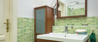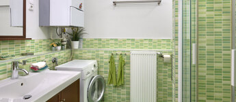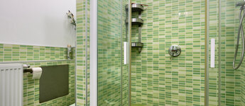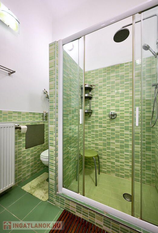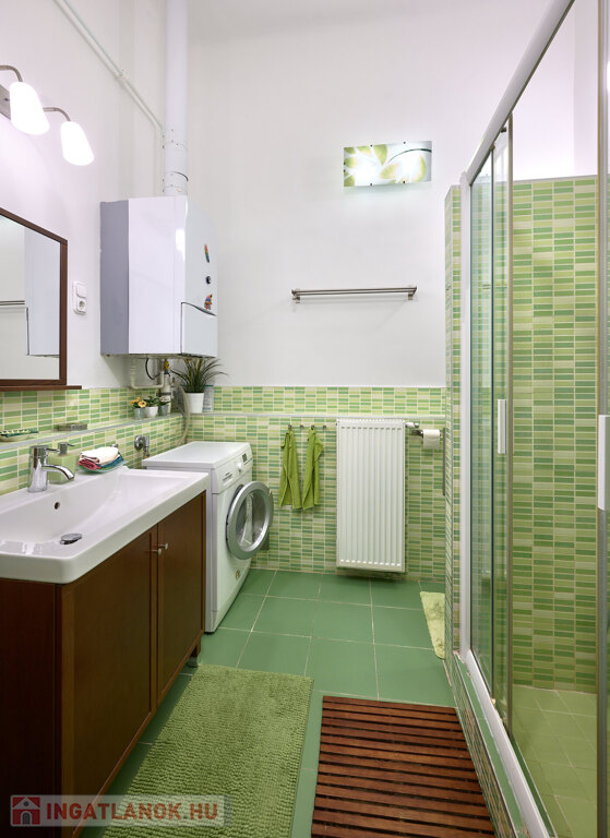 A fűtés és melegvíz kombi gázkazánnal megoldott.