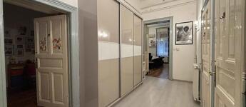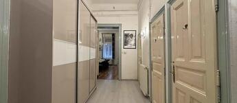 Eladó 124 m²-es (tulajdoni lap szerint), 130 m² hasznos területű, felújított, 3 (eredetileg 4) szobás lakás a VI. kerületben, a Vörösmarty utcában – utcai és udvari kilátással.