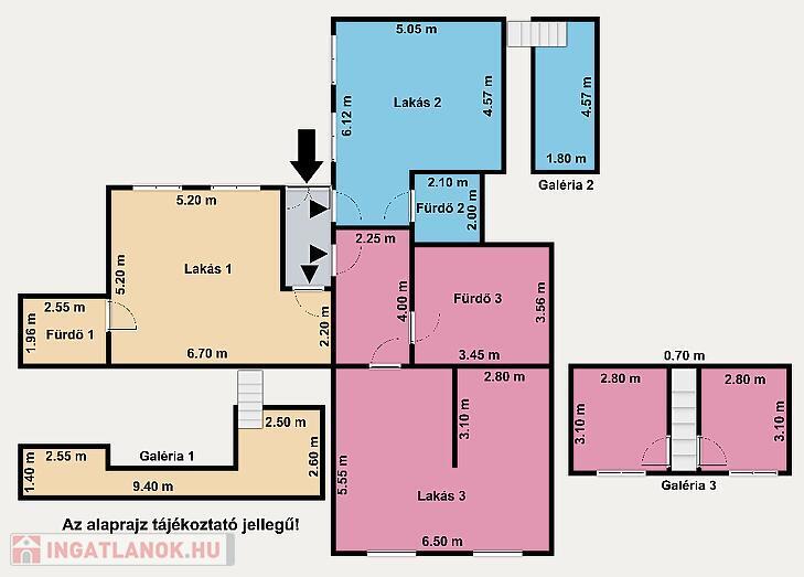 A 4,10 méteres belmagasság lehetővé tette, hogy mindhárom lakás állógalériával rendelkezzen, ami jelentősen növeli a hasznos alapterületet, és egyedi hangulatot kölcsönöz az ingatlannak. A lakások közös gázcirkó fűtéssel működnek. Az ingatlan utcára és udvarra néző ablakokkal is rendelkezik, így világos és jól átszellőztethető.
