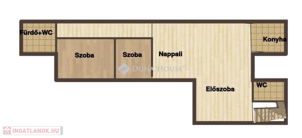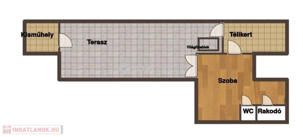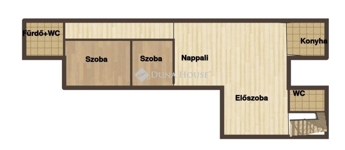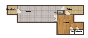 Az ingatlan alapterülete 3 hálószobát, tágas nappalit konyhával, fürdőszobát, összesen 3 WC-t, praktikus tárolót, valamint egyedülálló, 60 m²-es teraszt foglal magában.