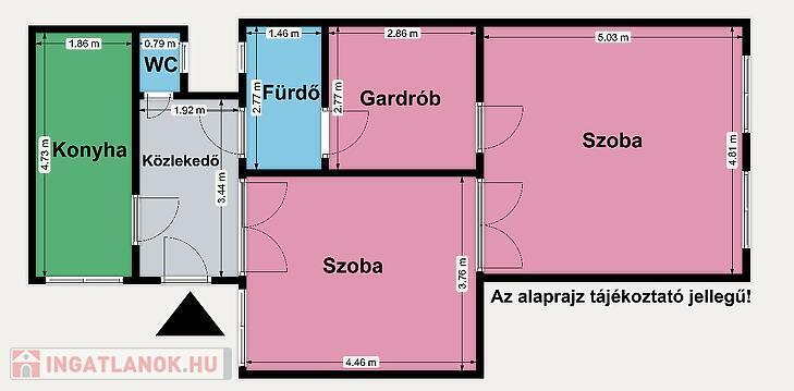 Az ingatlan az első emeleten helyezkedik el, elrendezése praktikus: 2 szoba, gardrób, konyha és fürdőszoba. A fűtést korszerű gázcirkó biztosítja. A lakás világos, jó állapotú, nagy belmagasságának köszönhetően pedig igazi polgári hangulatot áraszt.
