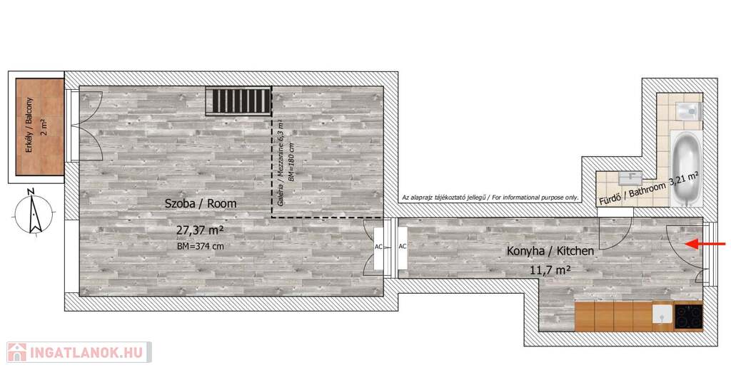 A lakás bútorok és kiegészítők nélkül kerül eladásra – a bemutatott berendezés csak inspirációt nyújt egy stílushoz.