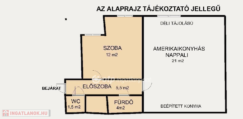 Az amerikai konyhás nappali déli tájolású, napfényes.