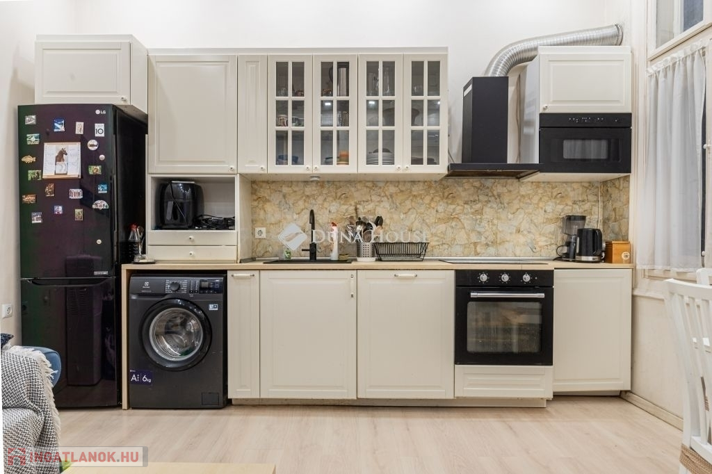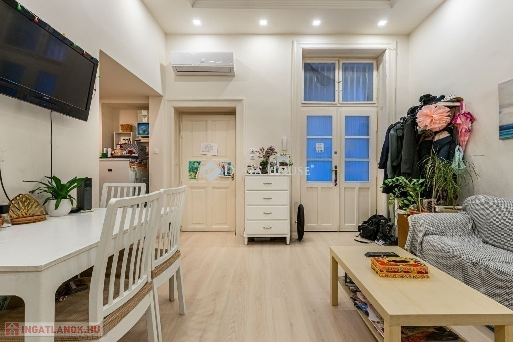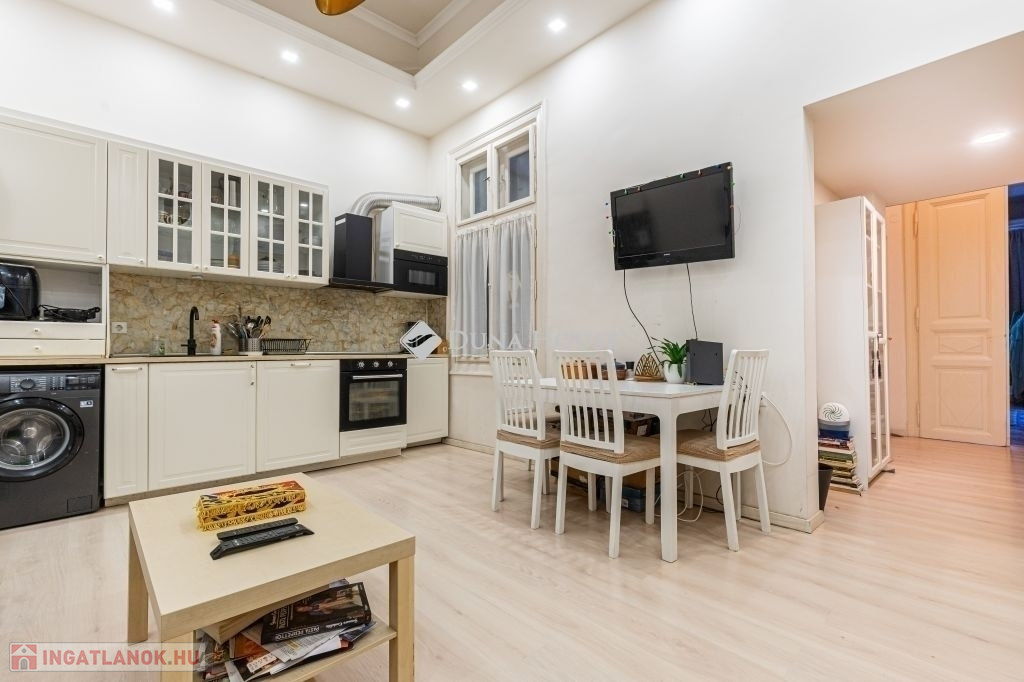 Megvételre kínálom ezt a 77 nm alapterületű, 2 szobás - a Rákóczi úttól kb 50 méterre található, az Erzsébet körúthoz közeli - 2019-ben teljeskörűen felújított 2. emeleti lakást.Az ingatlanba belépve szemben találjuk a gépesített konyhát (mosógép, hűtő, elektromos sütő, főzőlap), a folyosóról jobbra található egy különnyíló, galériázott( masszív vasgerenda, faburkolat) szoba (közel 14 nm), amely a csendes udvarra néz. Tovább haladva balra található a fürdő, amely zuhanyzóval van ellátva, majd tovább haladva a világos, csendes, nagyméretű ( 33nm) nappaliba érünk.Az ingatlan per és tehermentes, 1/1 tulajdon, rövid időn belül költözhető.Az ingatlan fűtűs/hűtéséről 3 db inverteres klíma gondoskodik.Közös költség 16.000.- Ft.A házat folyamatosan karbantartják, a lépcsőházat nemrégiben festették ki.Tömegközlekedés szempontjából is kiváló, a 4-es és a 2-es metró kb 2 percre található, a 7-es,99-es busz valamint a 4-es és 6-os villamos szintén pár perc sétatávolságra van.Az utcán mindig található parkolóhely.Megtekintéssel vagy egyéb kérdéssel kapcsolatban állok rendelkezésére a hét bármely napján.