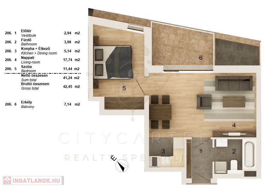 A liftes társasház 2. emeletén található, 44,81 nm-es, (41,24 nm lakás 7,14 nm terasszal) 2 szobás lakás korszerű hőszivattyús fűtés–hűtéssel és teljes körű okosotthon-rendszerrel felszerelve várja új tulajdonosát. A burkolatok még választhatók, így a leendő tulajdonos saját ízlésére szabhatja az ingatlant.