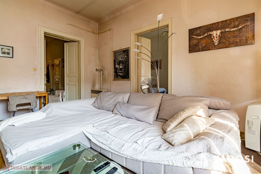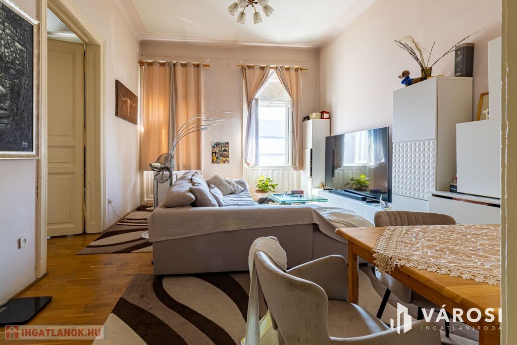 For sale in Budapest’s 8th district, on II. János Pál pápa Square,a bright, second-floor, two-room apartment, which can beconverted into a three-room layout if desired.