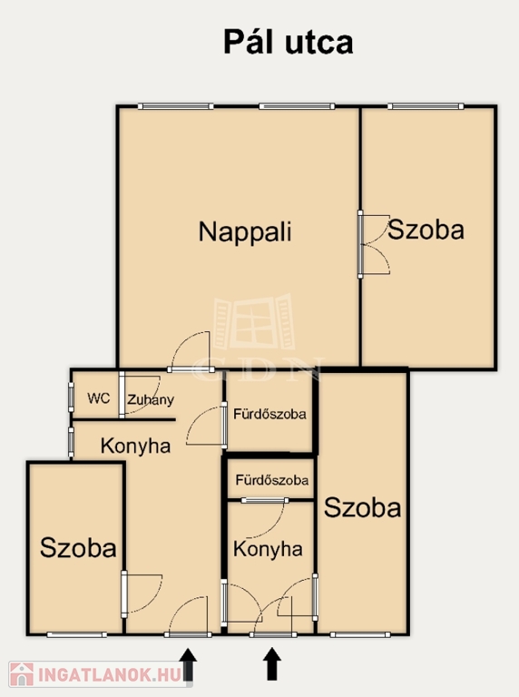 Az ingatlanban található két tágas, Pál utcára néző, déli tájolású szoba. Ezeken felül pedig két udvarra néző szoba is található a lakásban.