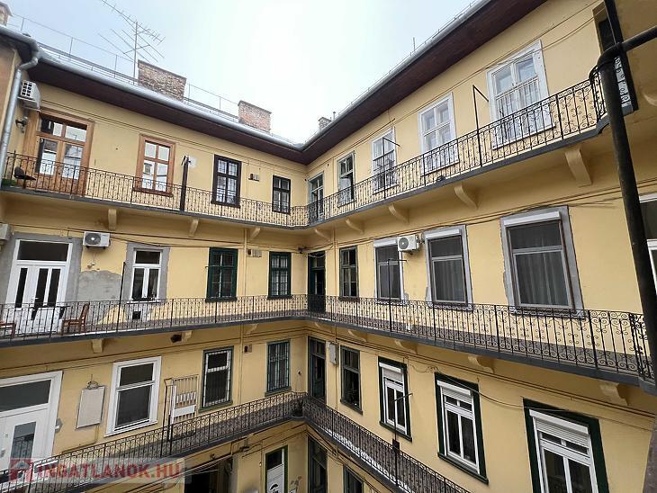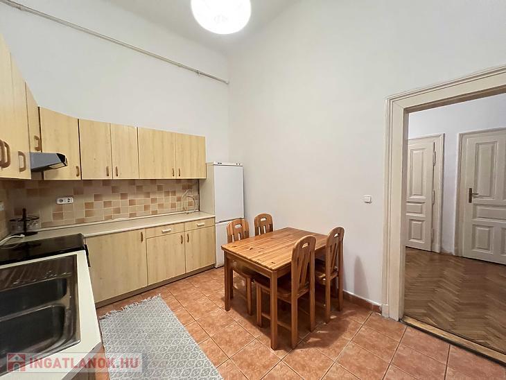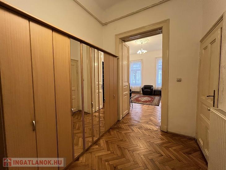 Az ingatlan közepes állapotú, elosztása kiváló: négy tágas szobával és külön konyhával rendelkezik, így ideális választás lehet nagyobb család számára, de befektetési célra is jól hasznosítható. A lakás egyik nagy előnye a 3,90 méteres belmagasság, amely világos, tágas térérzetet biztosít, és akár galériázásra is lehetőséget ad. Az ablakok utcára és belső udvarra egyaránt néznek, így a lakás jól szellőzik, miközben a belső udvar felé eső helyiségek csendesebbek. A közös költség havi 40.850 Ft.