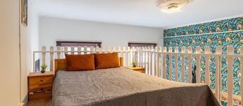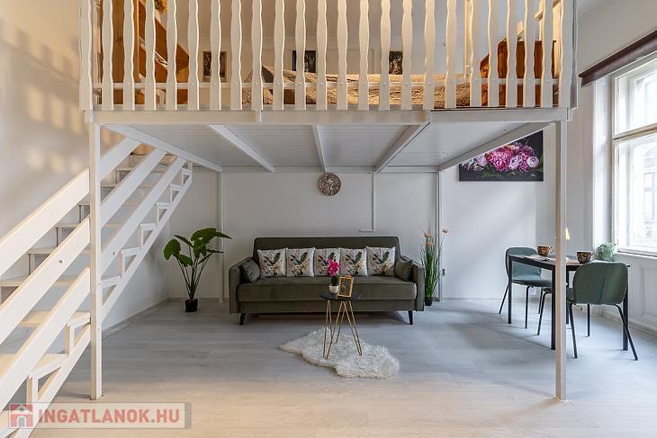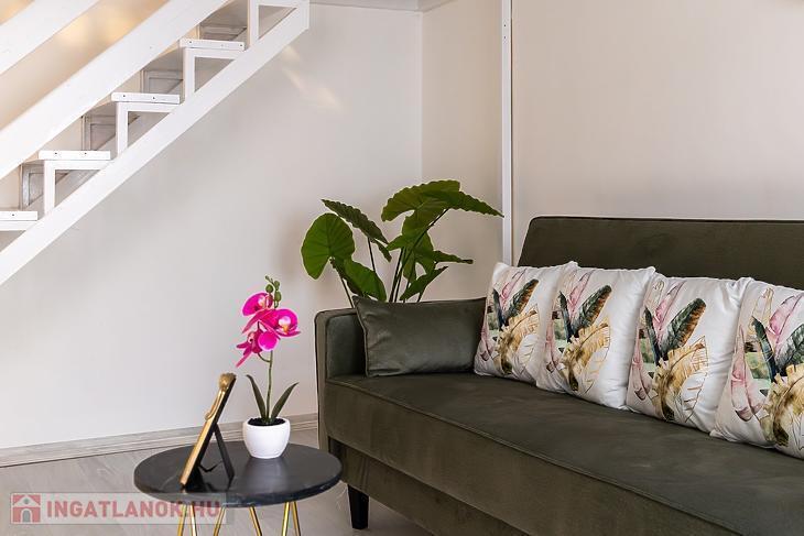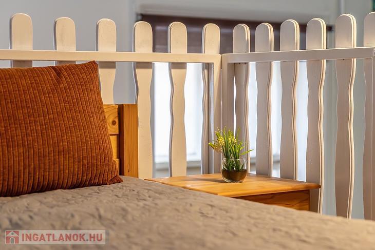 A két ablakos szoba igény szerint leválasztható, jelenleg a 3,65 m belmagasságot kihasználva hálógaléria került kialakításra.