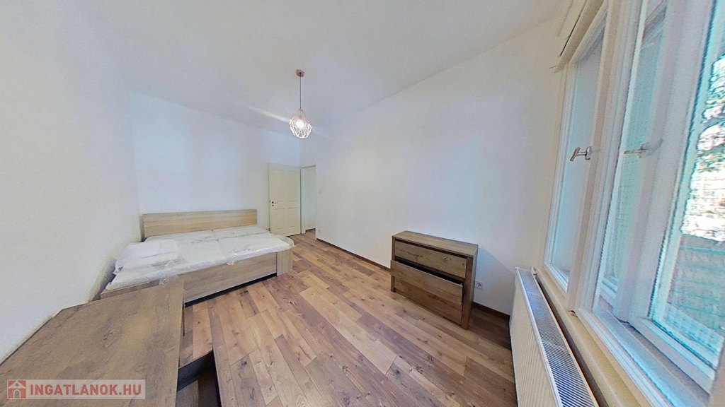 A lakáshoz tartozik a pincében 3,5 nm nagyságú zárható tároló, az épület belső udvarán közös használatban levő kertet is használhatjuk.