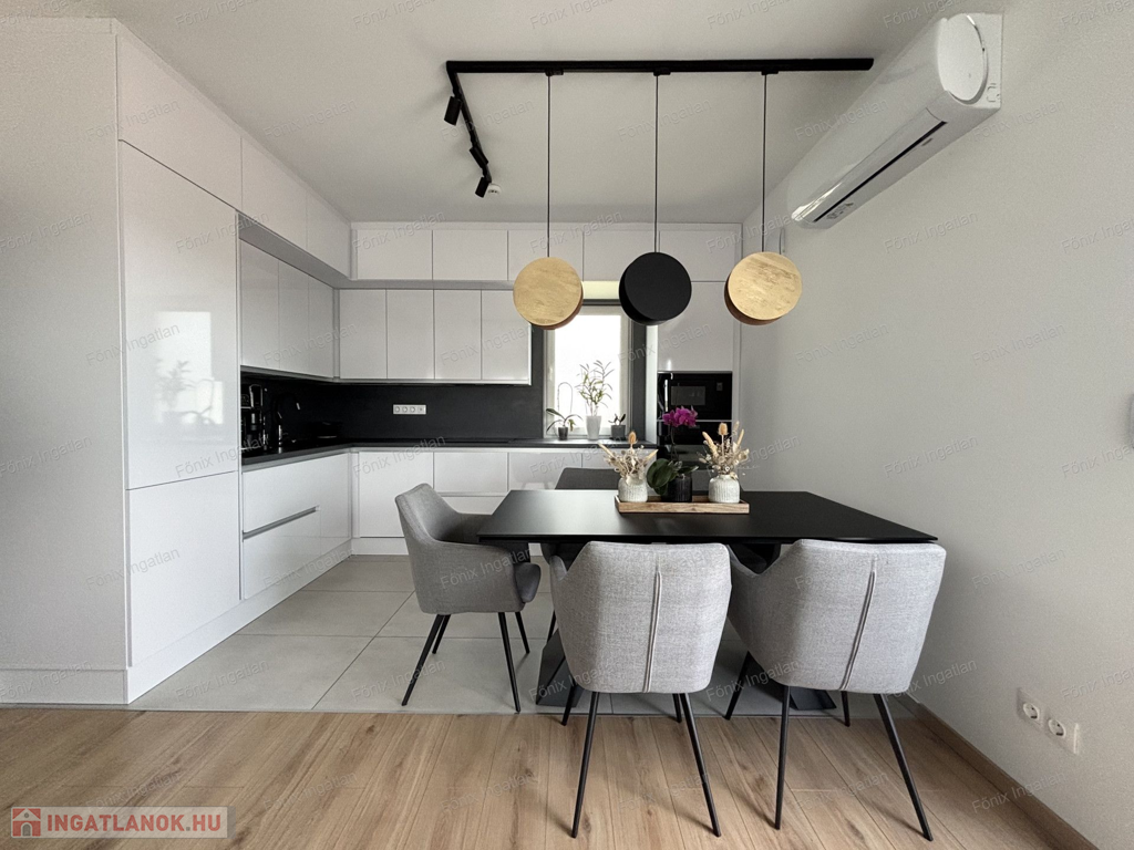 A lakás amerikai konyhás nappalival, 3 hálószobával, külön vendég WC-vel és tusolós fürdőszobával rendelkezik, így ideális családoknak és fiatal pároknak is.