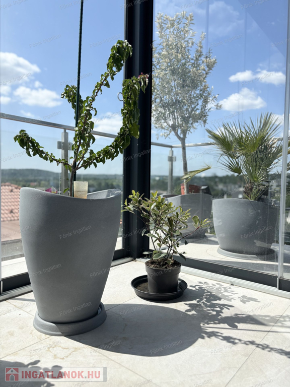 Az ingatlan 84 négyzetméter lakóterületből és 70 négyzetméteres, részben egy 25 négyzetméteres pergolával fedett teraszból áll, így összesen közel 110 négyzetméternyi fedett életteret kínál.