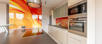 A liftből kilépve, pár lépés a lakás ajtaja, amelyen ha belépünk egy előszobába érkezünk. Itt letehetjük a kabátokat, cipőket, majd balra fordulva a konyha –étkező-nappaliba léphetünk, - a hatalmas nyílászáróknak és a DÉLI tájolásnak köszönhetően napfényes, mindig világos. A konyha mellett jó méretű kamra található.