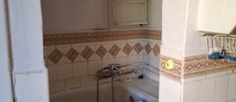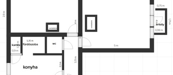 Tágas előszobából, ahol beépített szekrény is található, nyílik 2 különálló szoba, a nagyobb 20 m2, a kisebb pedig 15 m2, az előszobából nyílik a wc is, a konyha 8 m2, ahol kamra is rendelkezésre áll, a konyhából nyílik egy fürdő fülke, ülő káddal, gáz bojlerrel.