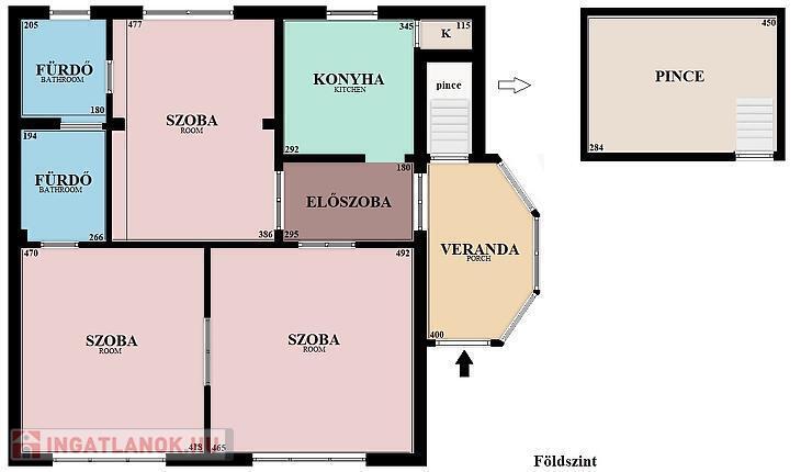 A verandán keresztül tudjuk megközelíteni a tárolást megkönnyítő 13 nm-es, száraz, betonozott privát pincét, mely akár mosókonyhává is alakítható.