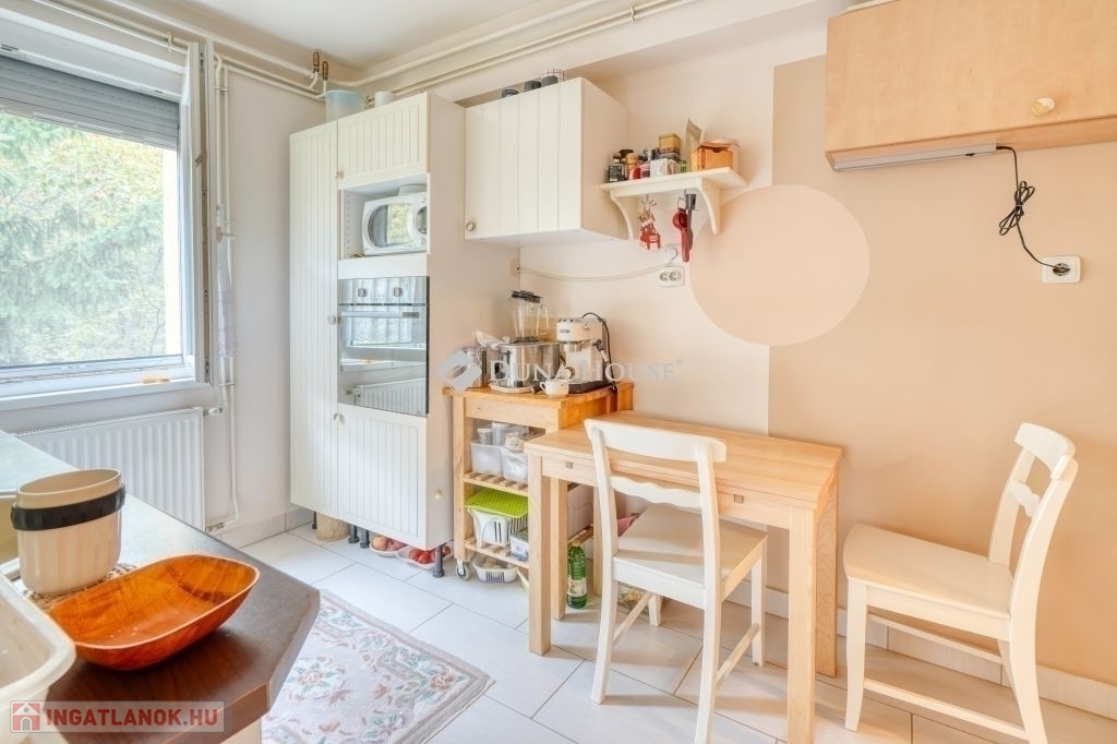 Eladó loggiás felújított tégla lakás a 12. kerületben ősfás környezetbenA XII. kerület közkedvelt, csendes részén egy 3. emeleti, lodzsás lakás most önre vár.53m2-es csendes, rendezett lakás eladó tehermentesen. Ideális otthon egy pár részére, kisebb családnak vagy egyedülállóknak. Frissítő levegőjű fás környezetben fogyaszthatja el reggeli kávéját.A lakás jellemzői:Belmagasság 2,6 m2Elosztás:ElőtérKonyha és étkező egybenKamraFürdőHálóNappaliKompakt teljes körű műszaki és esztétikai felújítás történt 2009-ben.Modern gázcirkó biztosítja a fűtést, egyedi mérőórákkal.Új hideg- és melegburkolatok. Műanyag nyílászárók, szúnyogháló és klíma gondoskodik a lakás gondtalan használatáról.Körbejárható elrendezése kellemes.Könnyedén és gyorsan kiadható.A társasház:Tégla építésű, 16 lakásos rendezett társasházTiszta, zárt lépcsőházElhelyezkedés, infrastruktúra:Közelben boltok, óvoda, iskola, szolgáltatásokJó közlekedés :22, 22A, 222, 291-es buszok, 922, 922B éjszakai buszok megállói a közelbenFigyelemfelkeltő lehetőség mindazoknak aki egy kiváló adottságú, azonnal költözhető lakást keres a XII. kerület természetközeli részén. Keressen bizalommal, most!