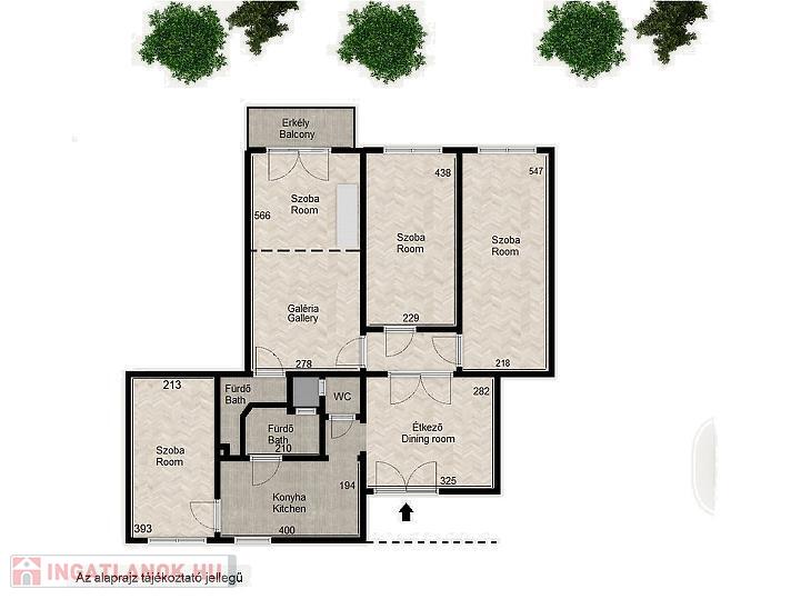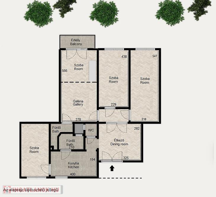 Szobái ideális méretűek, naposak, külön nyílnak és jól szeparáltak. Három szoba keleti irányba, egy pedig nyugati irányba tekint. A legnagyobb méretű szoba egy 8 nm-es galériával és teraszkapcsolattal is rendelkezik.