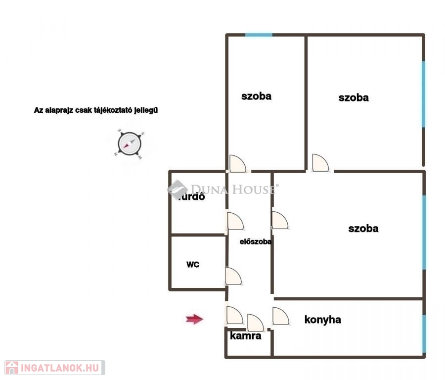 3 nagyméretű szoba ( melyből 2 külön nyíló), konyha, fürdő, külön WC