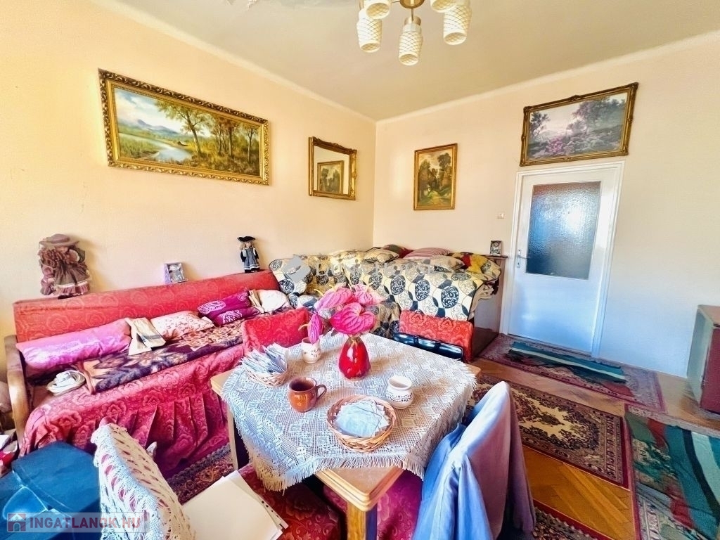 A 74 m²-es, 3 szobás társasházi lakás tágas terekkel rendelkezik, de felújításra szorul.