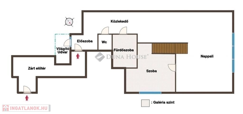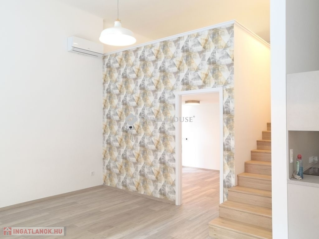 Az ingatlan felújítása során nagy belmagasságát helyenkét extra szint kialakításával használták ki. Tágas, 24m2-es nappalijából ennek köszönhetően két egész szobányi hálóhelyiség nyílik, egy a szoba szintjén, míg egy a galériaszinten, ahol a belmagasság szintén lehetővé teszi, hogy normál hálóhelyiségként használjuk. A már megnevezett helyiségeken kívül egy teljesen felszerelt, gépesített konyha, egy tágas fürdőszoba, egy külön wc, egy előszoba, és a helyiségek külön bejáratát biztosító közlekedő találhatóak még a lakótérben. Az előszobából a lakás meleltti légudvarra is kiléphetünk, amely szintén rendezett, praktikusan használható akár teregetésre, tárolásra is. A területre csak ebből a lakásból nyílik kijárási lehetőség.